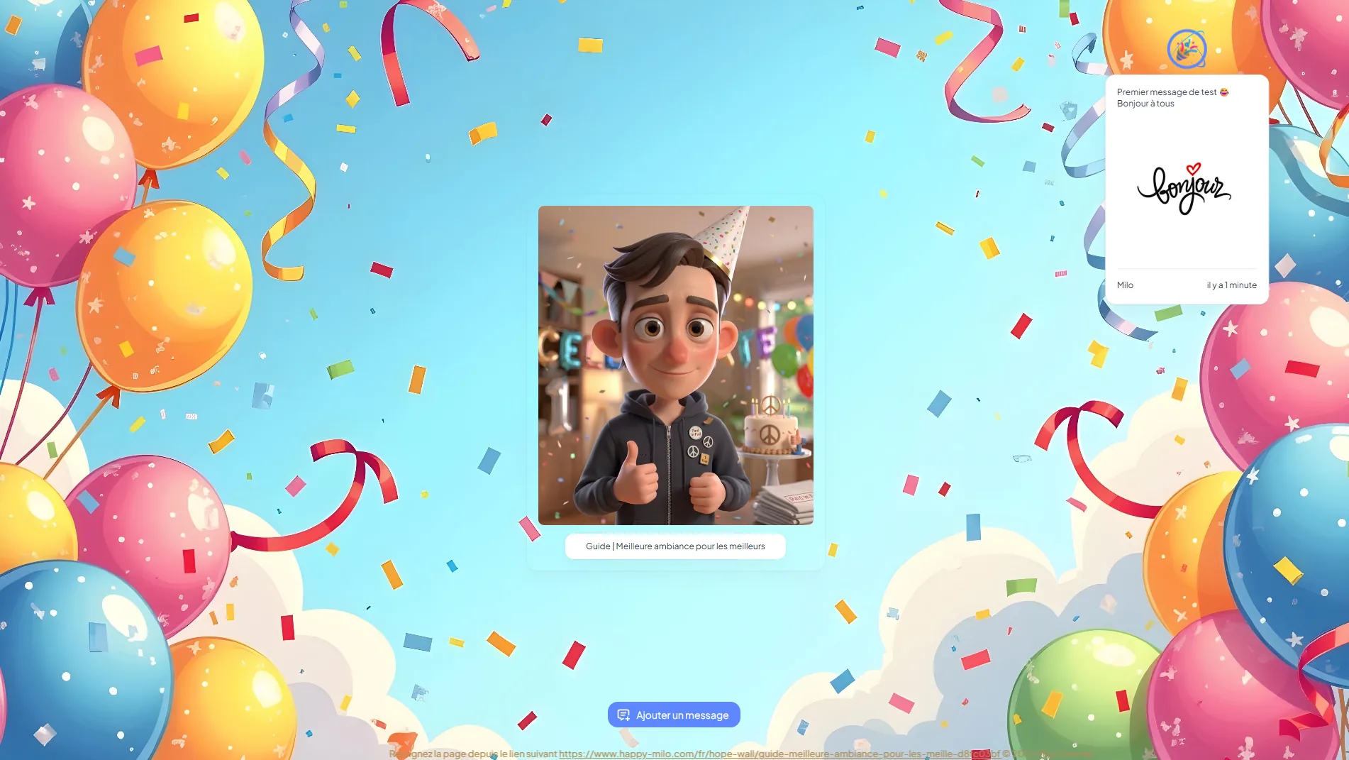 Vous souhaitez marquer le coup pour l'anniversaire d'un ami, d'un collègue ou pour votre propre événement ? Vous êtes au bon endroit. Le Happy Wall Milo est l'outil parfait pour rassembler tout le monde, même à distance, autour d'une surprise animée et pleine d'émotion.