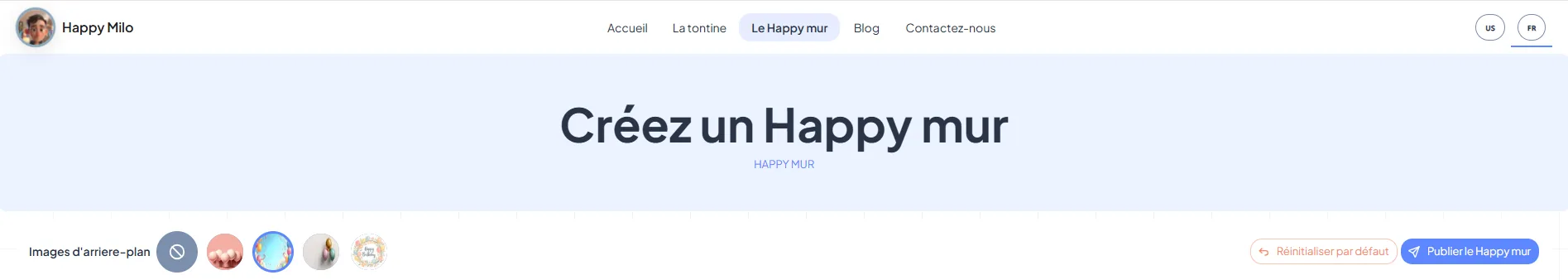 Pour commencer, rendez-vous sur la page de création en suivant ce lien : Créer le Happy Mur. Assurez-vous d'être bien connecté à votre compte pour sauvegarder votre création.